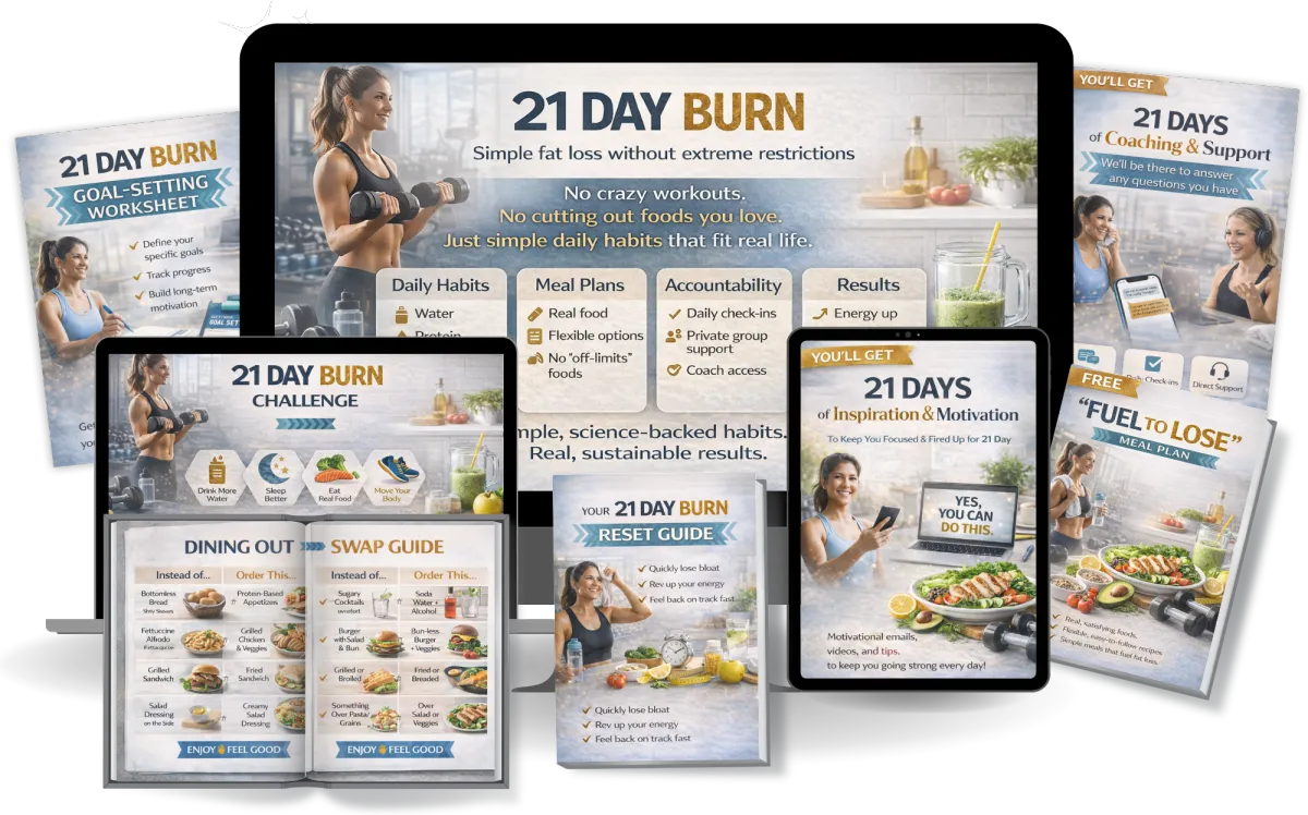 The 21 Day Burn uses the same simple approach that’s helped over 50 busy women who thought they didn’t have the time or motivation to lose weight finally see results, feel better, and stick to a healthier lifestyle.